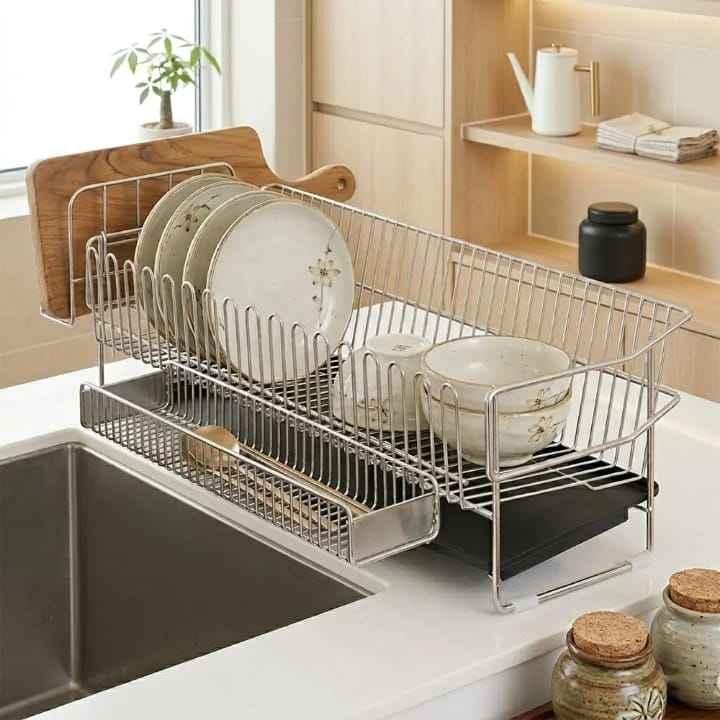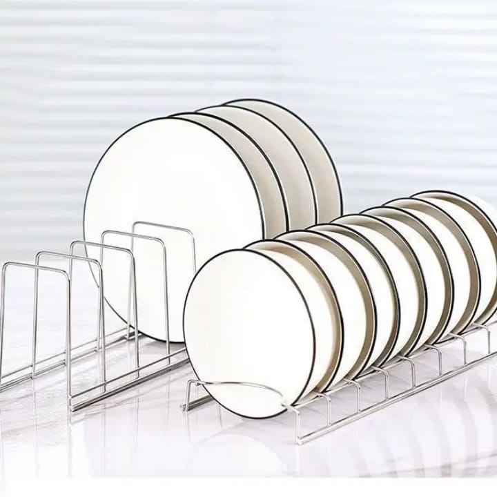 Stainless Steel Dish Rack Kitchen Cabinet Organizer Multi Slot Plate Storage Stand for Dinnerware Lid Holder Countertop Rack
