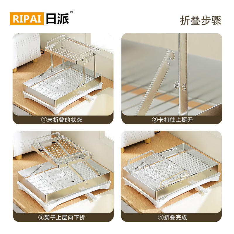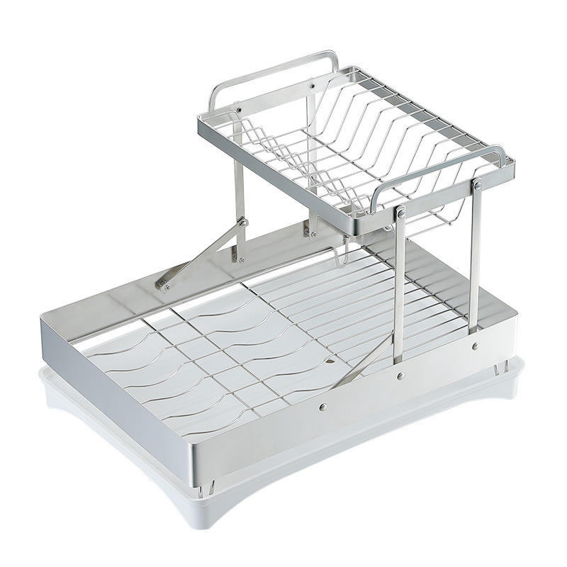 Stainless Steel Dish Rack With Tray Quick Dry Countertop Sink Draining Rack Large Size Square Shape