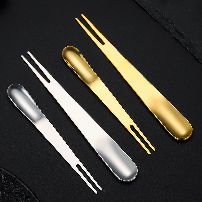 Stainless Steel Dual Purpose Spoon Fork Dessert Tool Multi Functional Fruit Skewer Chocolate Fork Small Serving Utensil