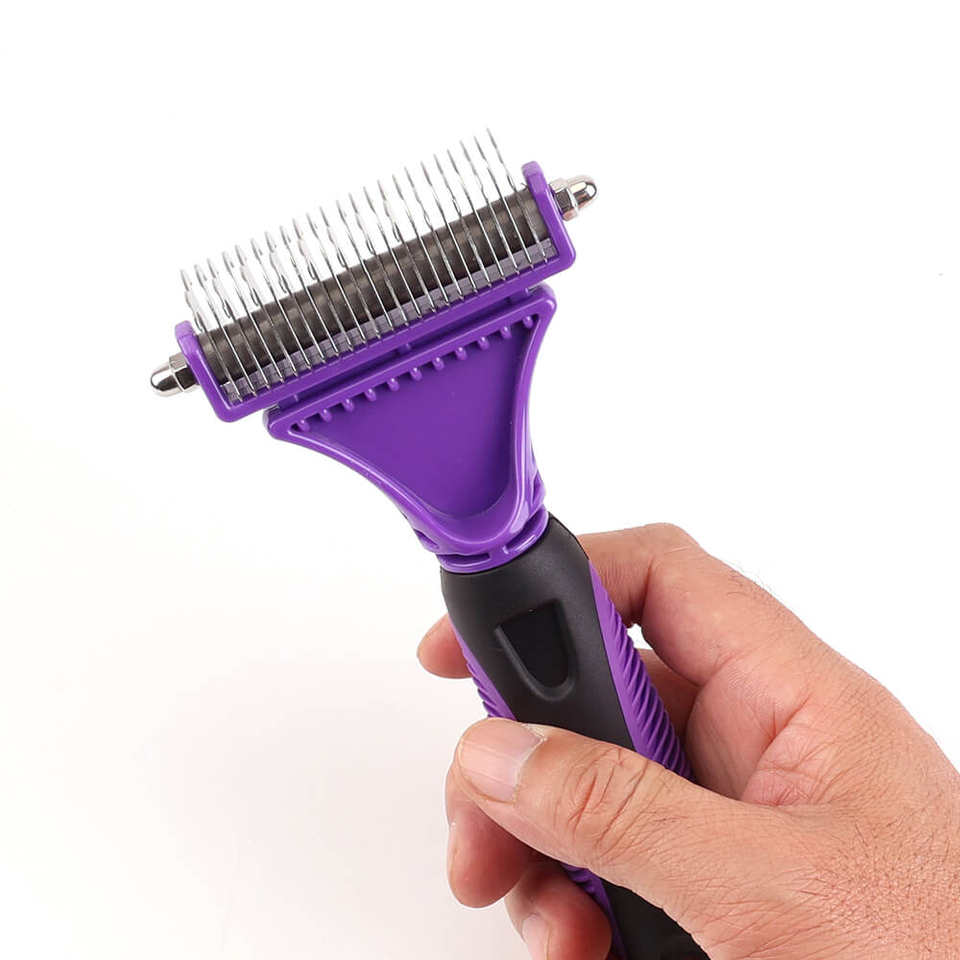 Stainless Steel Dual Side Detangler Rounded Blade Safe Skin Curved Edge Cut Knots Hanging Hole Pet Comb