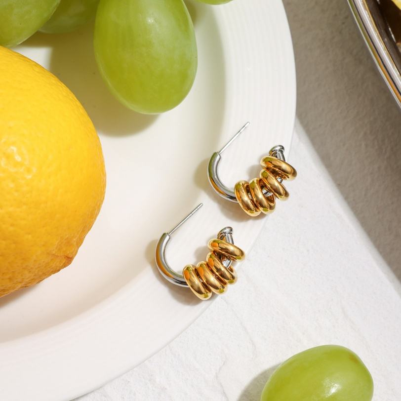 Stainless Steel Earrings C-shaped Earrings Hypoallergenic Fashionable and High-end Color Blocked Geometric Gold Earrings