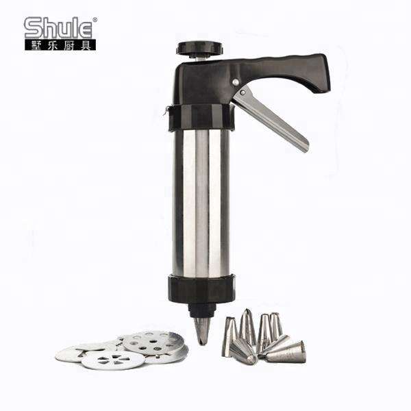 Stainless Steel Eco-Friendly Biscuit Icing Decorating Gun Set Cookie Press Kit with Heart & Square Shapes Cake Decoration Tools
