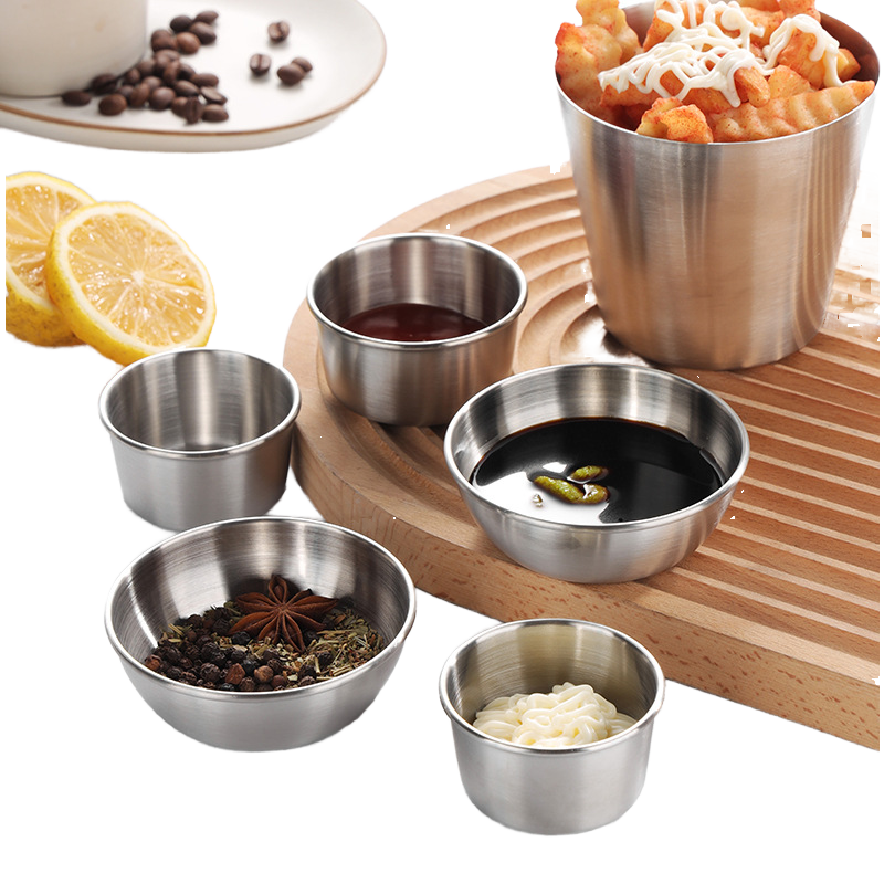 Stainless Steel Eco-Friendly Customized Kitchen Tableware Korean Dipping Sauce Bowl Golden Silver Ketchup Cup French Fries