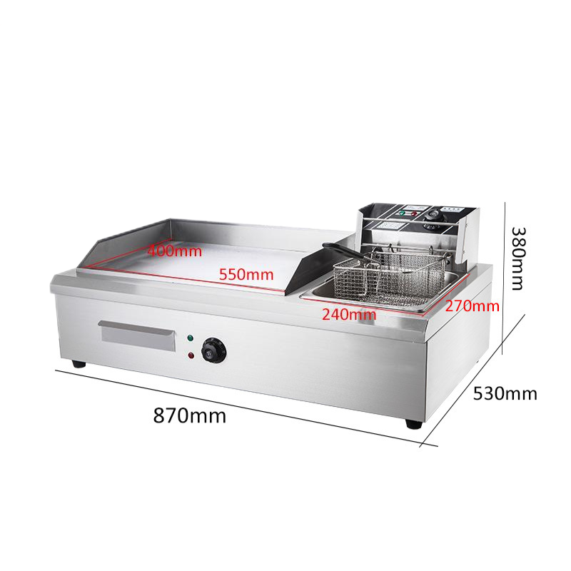 Stainless Steel Electric Meat Griddle Commercial Beef Cooking Stove Machine 2 in 1 with Electric Deep Chicken Fryer