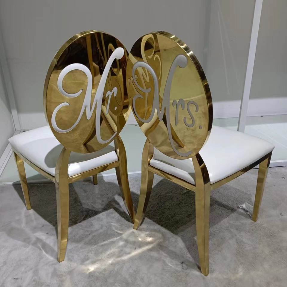 Stainless Steel Elegant Wedding Furniture Events Silver Party White and Gold Oval Back Chairs