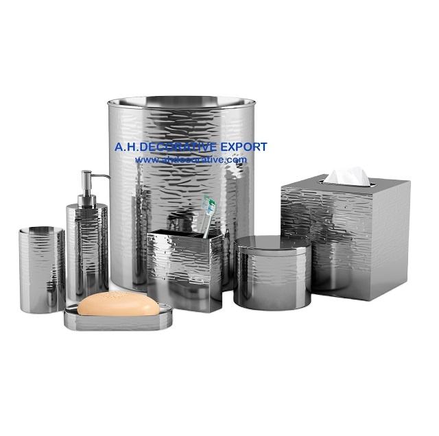 Stainless Steel Embossed Bathroom Sets for Decoration Shiny Finished Metal Sanitary Set for Washroom Decoration