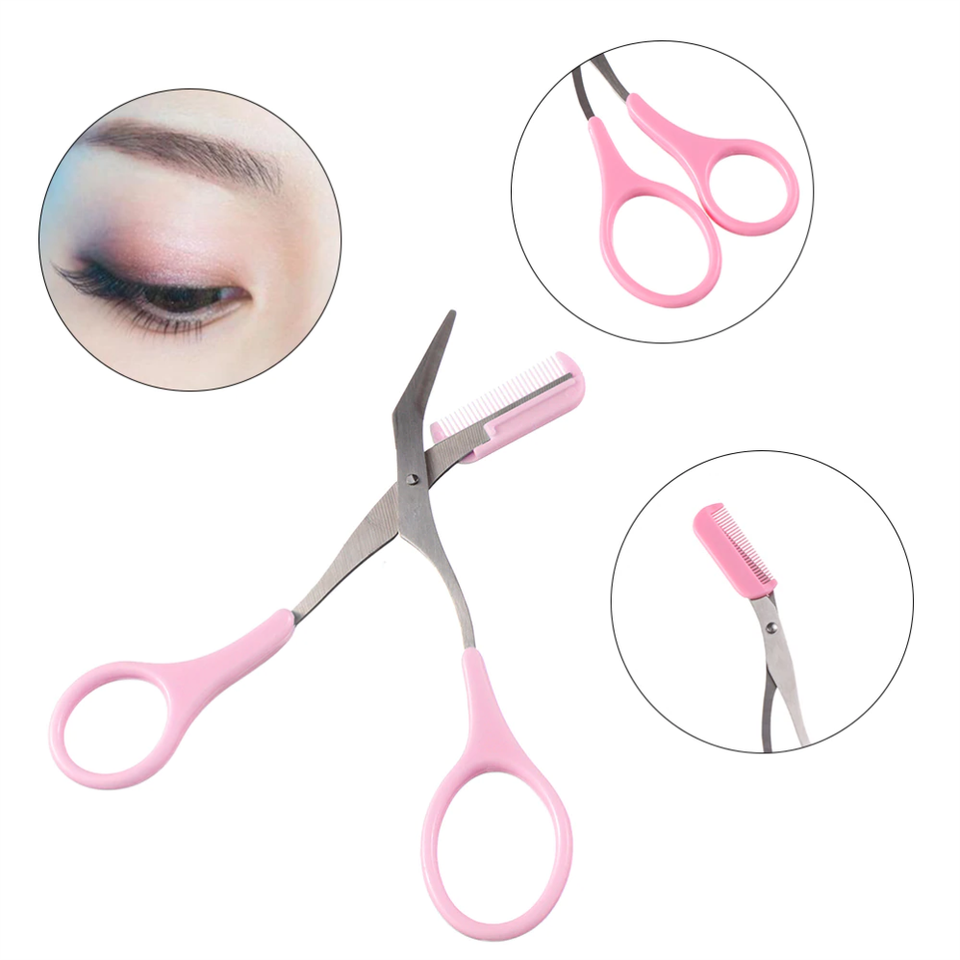 Stainless Steel Eyebrow Trimmer Scissor With Comb Hair Grooming Shaping Shaver Eyelash Hair Clips Hair Remover Blue Black Pink
