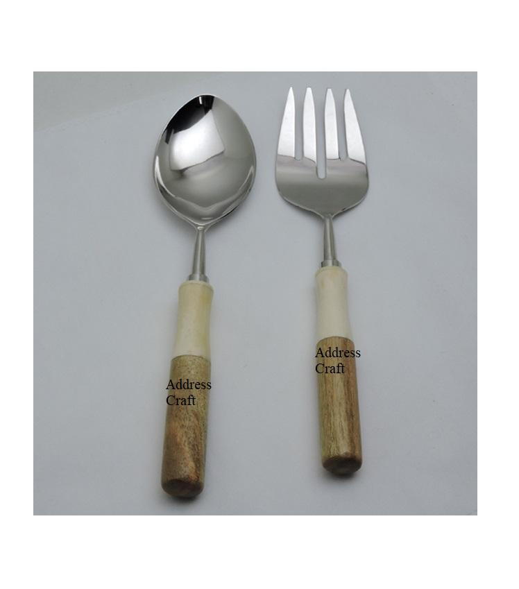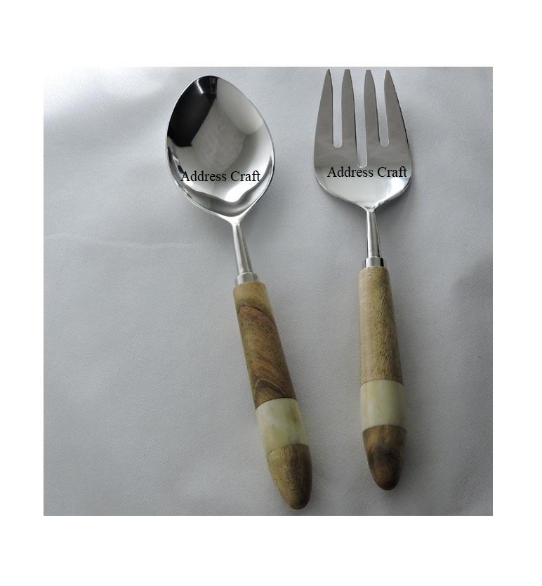 Stainless Steel Flatware Salad Server Spoon Set with Luxury Wood Handle Sustainable Cutlery for Weddings and Restaurants Utensil