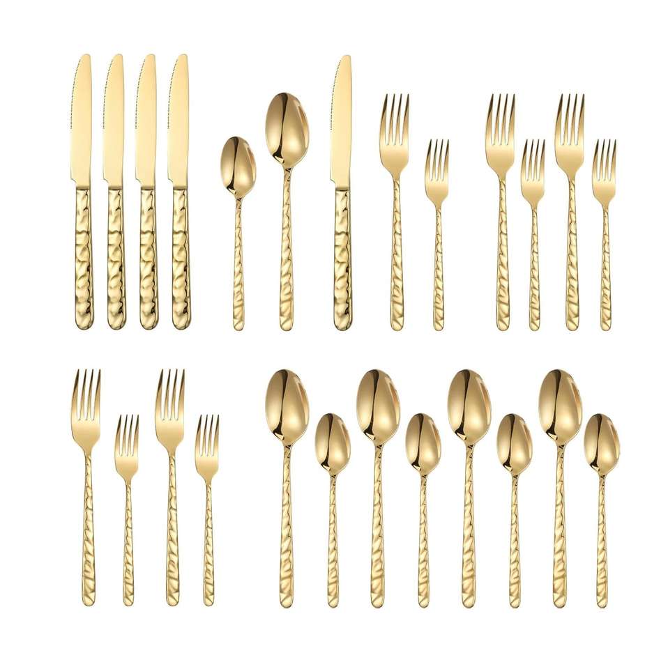 Stainless Steel Flatware Titanium Plated Gold Utensils, Elegant Cutlery for Home Wedding Dinner Party