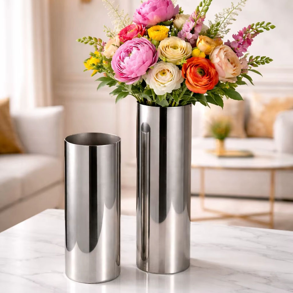 Stainless Steel Flower Vase Modern Metal Vase Luxury Steel Vase Cylinder Vase Stainless Steel Decorative Table Vase