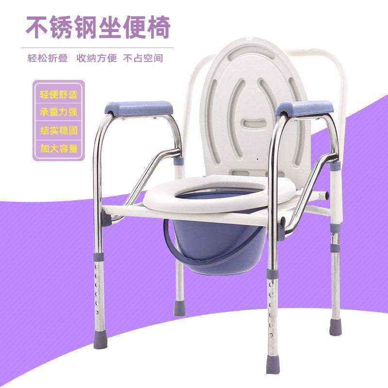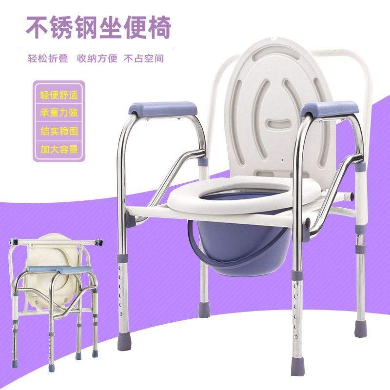 Stainless Steel Folding Commode Chair With Bowl High Backrest For Elderly And Pregnant Women Soft Seat