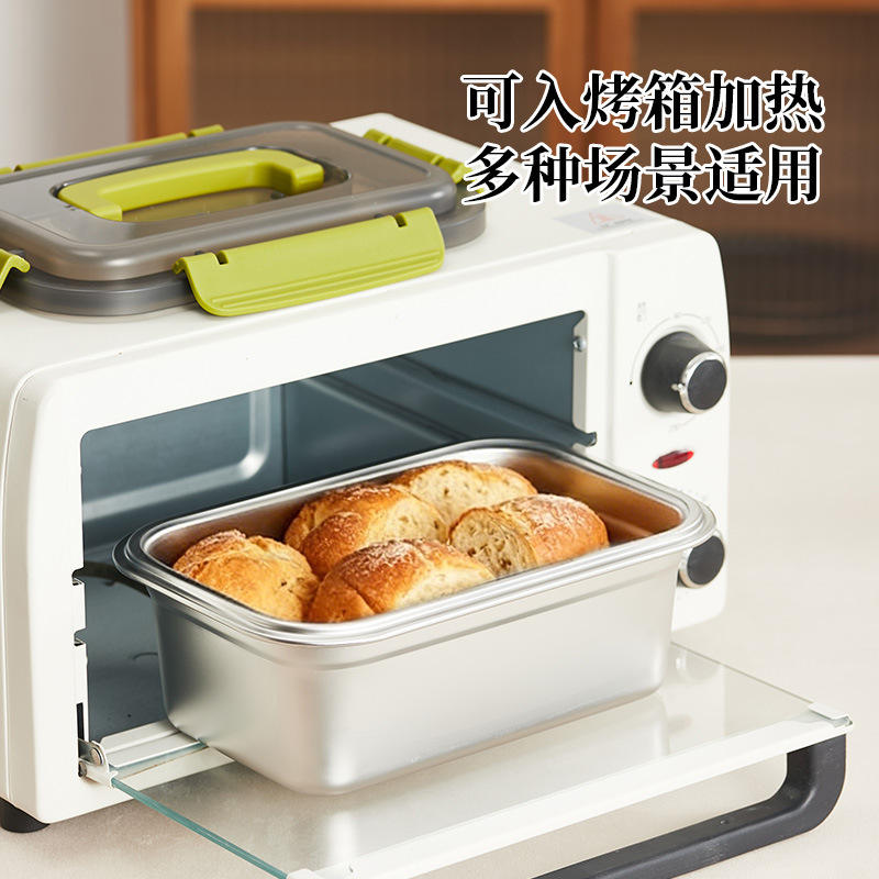 Stainless Steel Food Storage Container Rectangle Clip On Lid Travel Use 1000Ml Solid Color