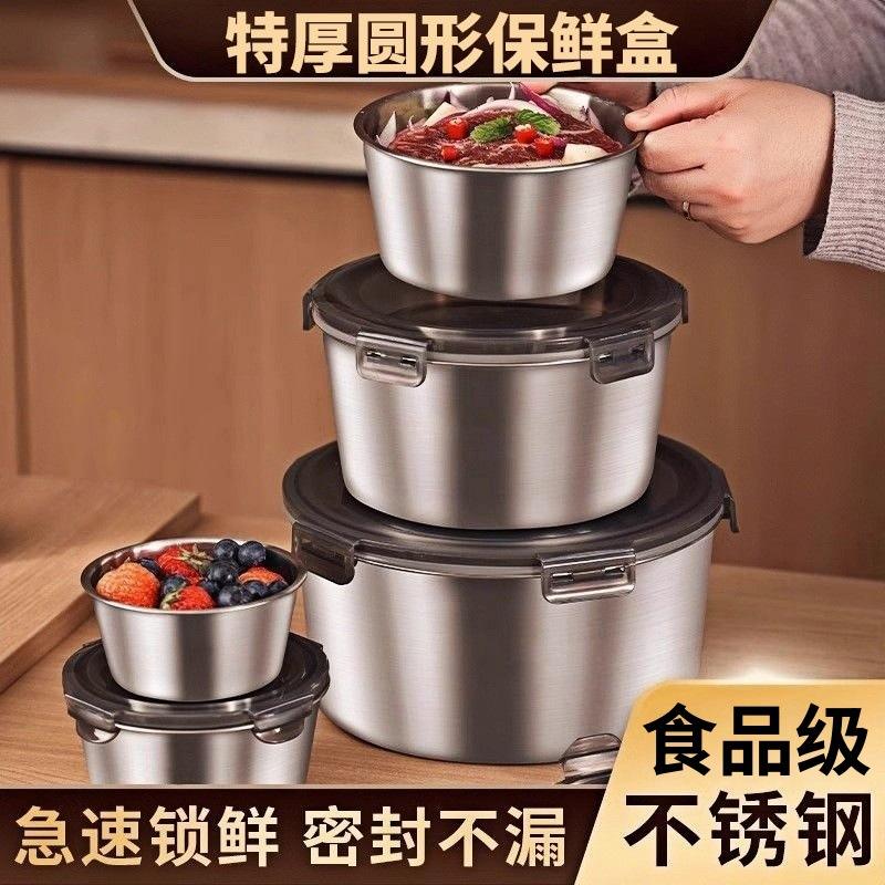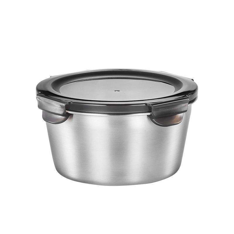 Stainless Steel Food Storage Container Round Airtight Clip-on Lid Lunch Box Travel Use 4 Pieces Set