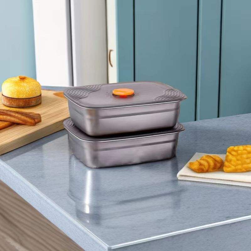 Stainless Steel Food Storage Containers Rectangle Clip-on Lid Refrigerator Airtight Household Lunch Box