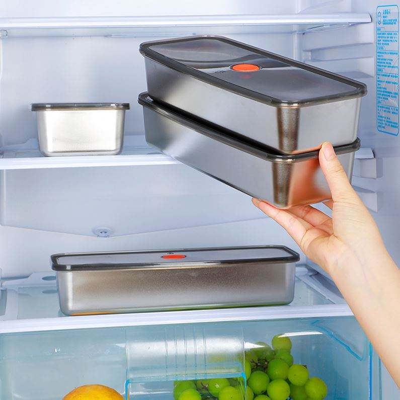 Stainless Steel Freshness Box Lid Stackable Food Storage Container Household Kitchen Refrigerator Storage Solution