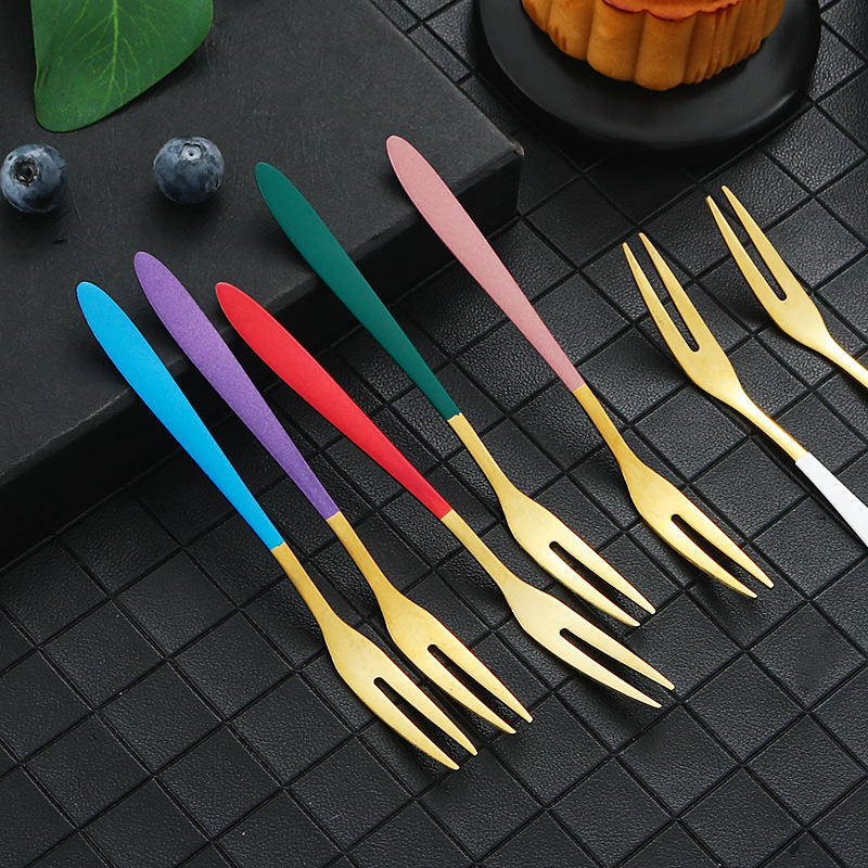 Stainless Steel Fruit Forks Colorful Dessert Forks For Cake Mooncake Household Use Solid Color Design YT A017