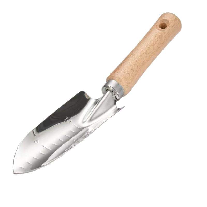 Stainless Steel Garden Shovel Wide Blade With Wooden Handle For Landscaping And Vegetable Gardening