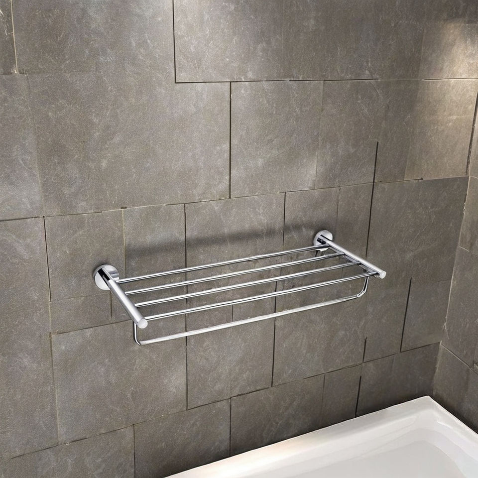 Stainless Steel Glossy Grace Chrome Towel Rack Wall Mounted Bathroom Towel Bar Polished Rustproof Modern Shower Shelf Holder