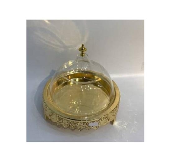 Stainless Steel Gold Color Dessert Tray With Cover Unique Design Round Shape Dates Tray With Cover For Sale