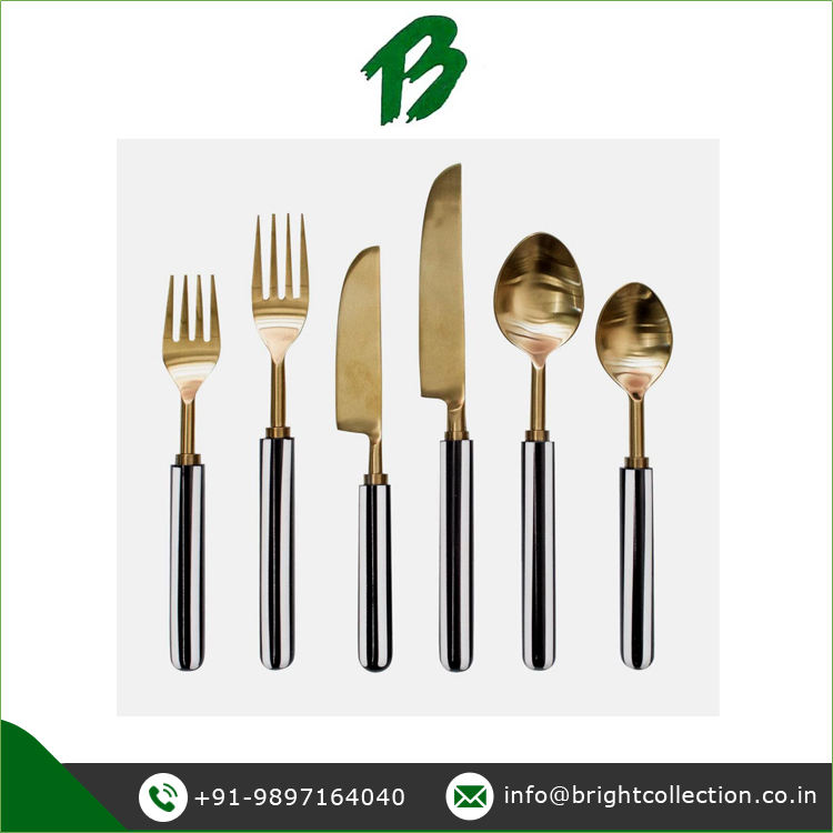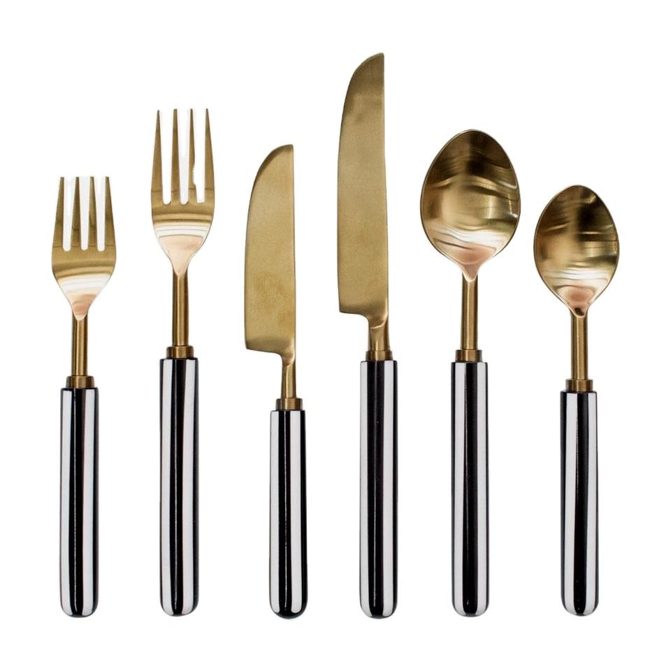 Stainless Steel Gold Polished Superlative Quality Set Black and White Resin Handle Cutlery Set with Custom Design