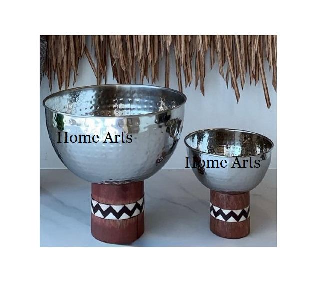 Stainless Steel Hammered Chocolates Bowl With Wood Stand Set of 2 Different Sizes Dessert Bowl for Top Selling