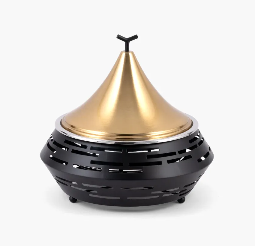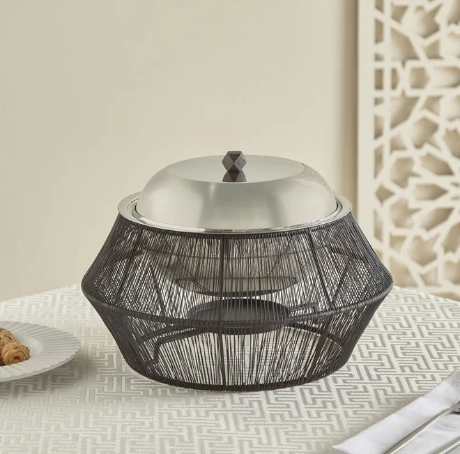 Stainless Steel Hammered Food Warmer with Black Iron Cutwork Stand Modern Buffet & Table Serving Dish