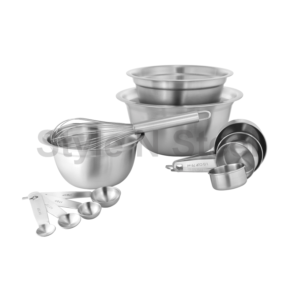 Silver Color Stainless Steel Handle 4-Piece Kitchen Essential Everyday Use Measuring Cup Spoon Set Mixing Bowl Including Metal
