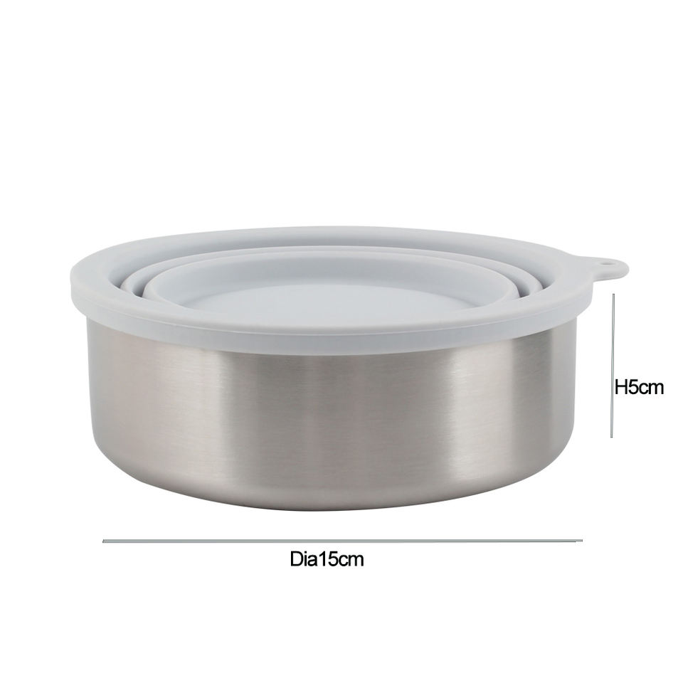 Stainless Steel Heavy Gauge Dog Bowl With Non-Slip Removable Silicone Base, 2-in-1 Dog Bowl with Extra Collapsible Lid