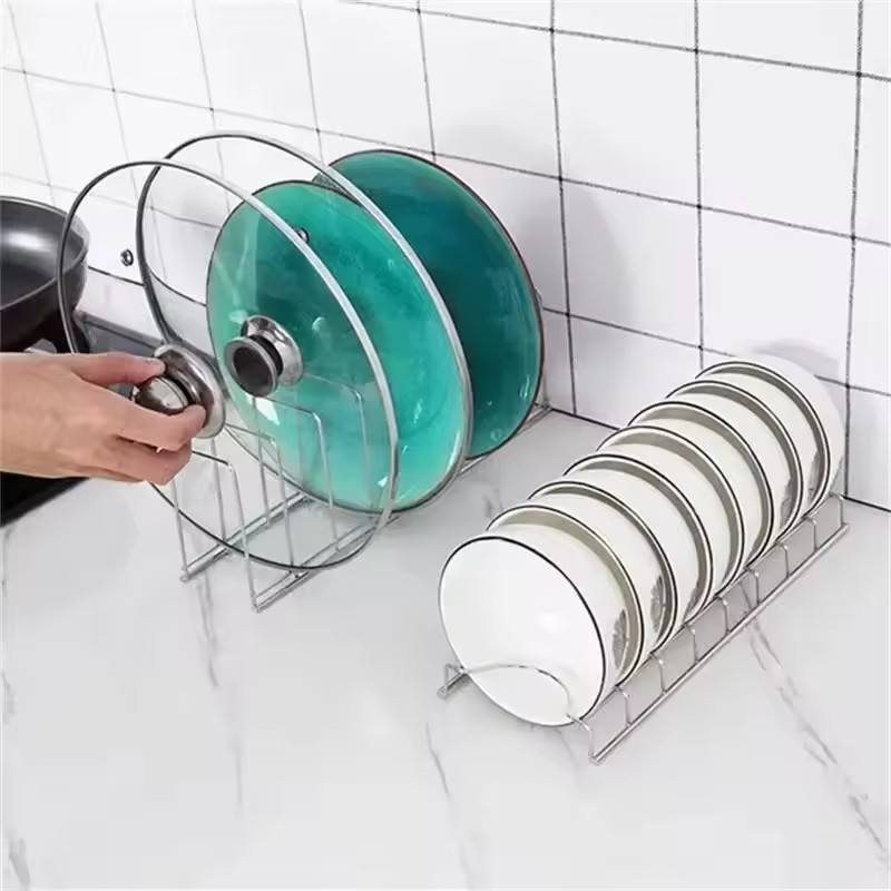 Stainless Steel Household Dish Rack Kitchen Bowl Dish Organizer Pot Lid Rack Home Cutlery Dishes Bathroom Accessory Storage