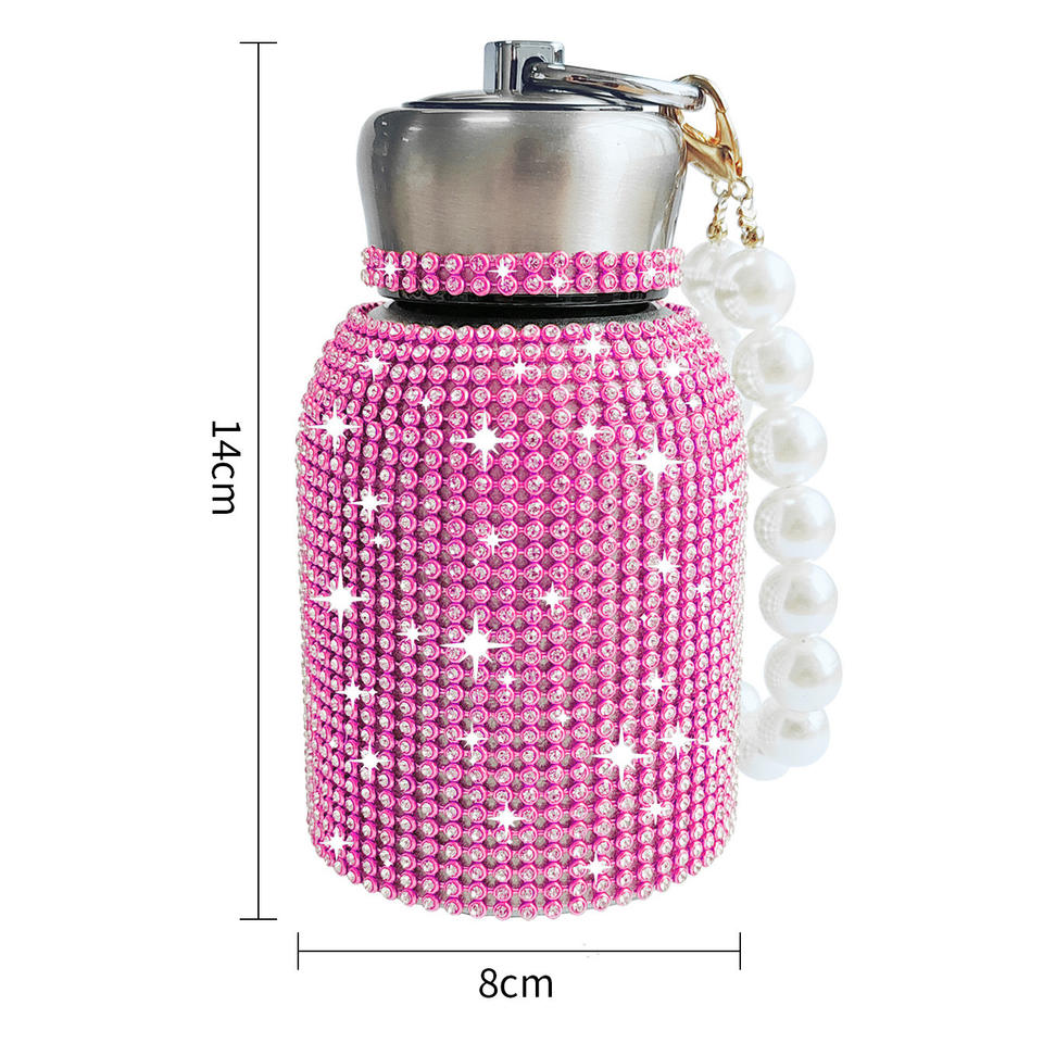 Stainless Steel Insulated Belly Tumbler for Women Pearl Chain Bling Rhinestone Diamond Glitter Water Bottle Gift