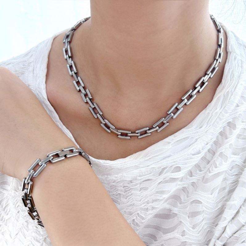 Stainless Steel Jewelry Set Gold Plated Fashion Necklace Bracelet Set Rectangular Link Watch Chain Stainless Steel Bracelets