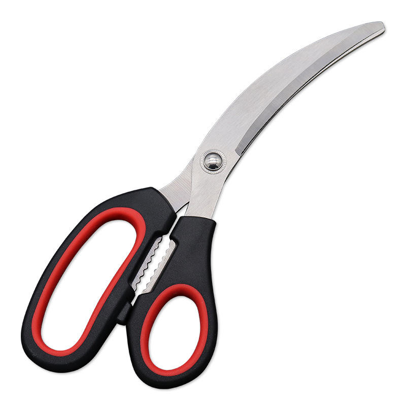 Stainless Steel Kitchen Scissors Elbow Shape Black Red Handle For Meat Fish Bone Cutting Home Use