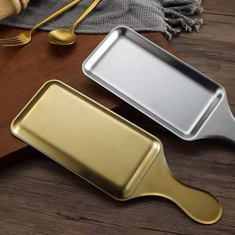 Stainless Steel Kitchen Trays Handle Western Plate Tableware Modern Design Wedding Customizable Restaurants Snack Plate