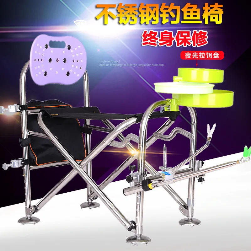 Stainless Steel Knight Fishing Chair Portable Foldable Multi Functional With Night Light Bait Tray For Outdoor Fishing