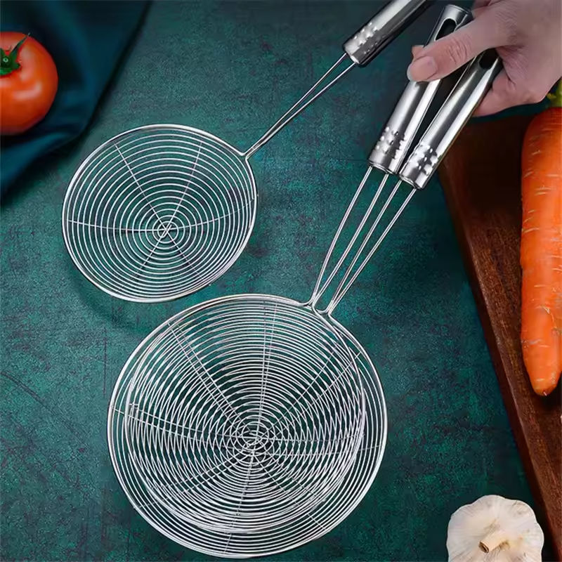 Stainless Steel Large Kitchenware Set Flat Bottom Colander Frying Strainer Flat Bottom Oil Soup Leak-Proof Metal Utensils