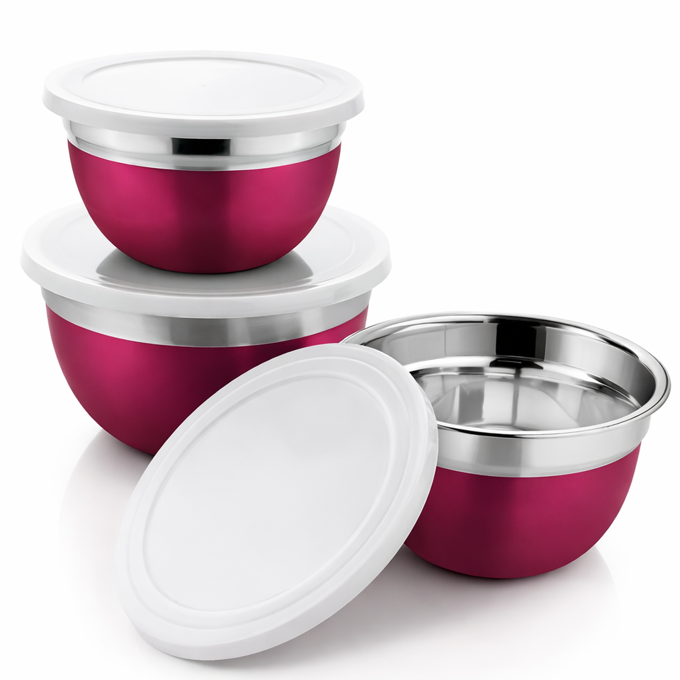 Stainless Steel Lid Bowl with Plastic Lid Set of 3 Mixing Bowl Copper Stainless Steel Serving Bowls Set