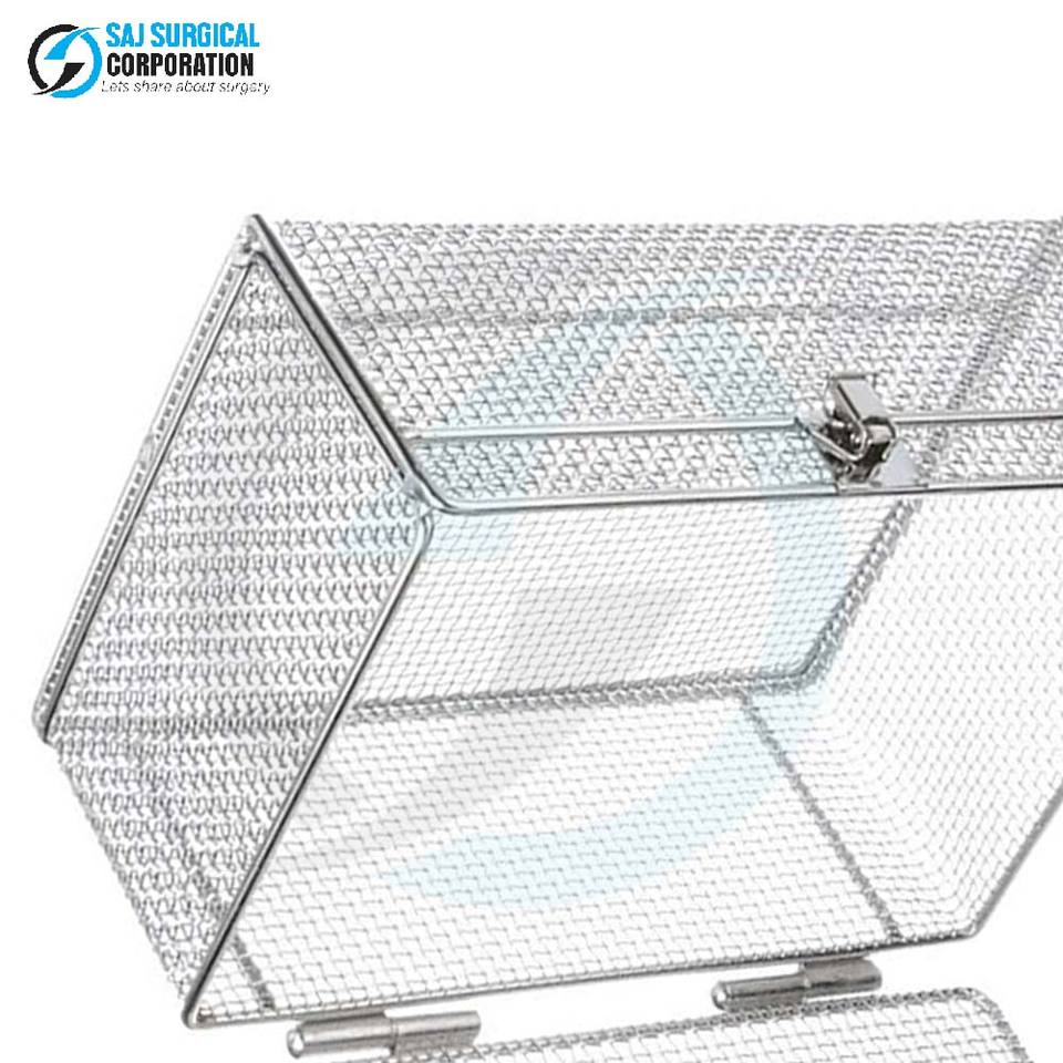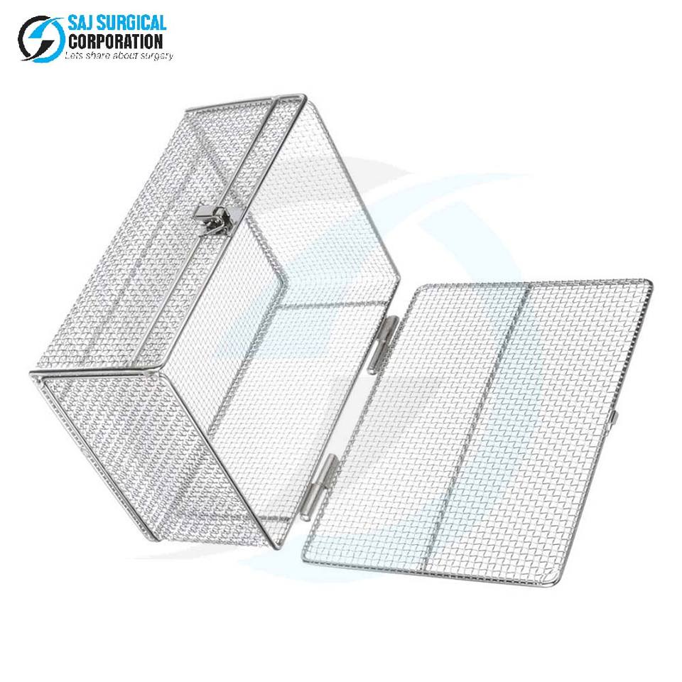 Stainless Steel Manual Wire Mesh Basket Locking Lid Durable Reusable Hospital Sterilization Storage Secure Surgical Instrument