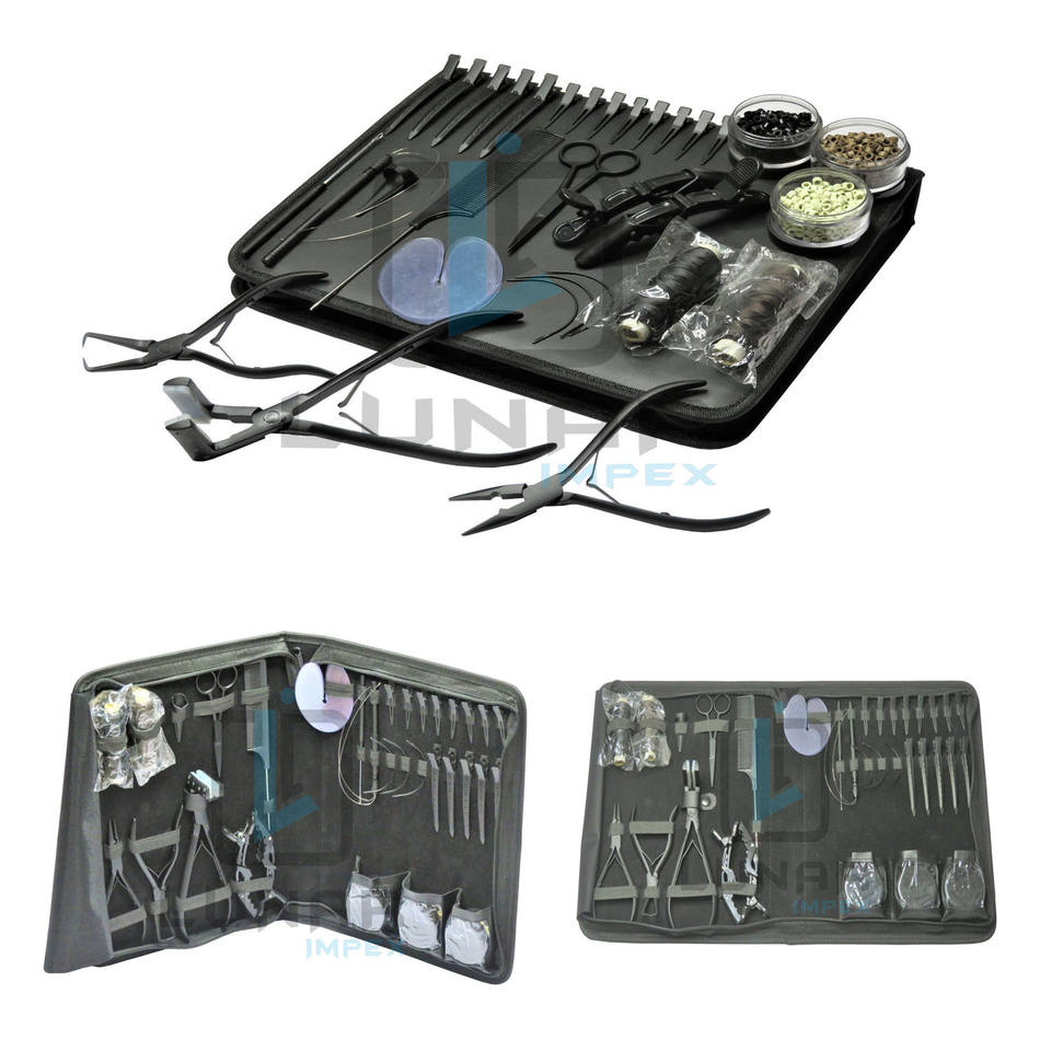 Stainless Steel Matte Black I Tip Hair Extension Tools Kit With Loop Hook Hair Extension Beads With Box Threads C Shape Needles