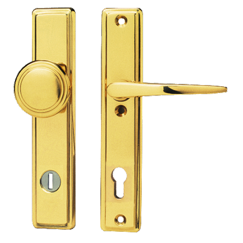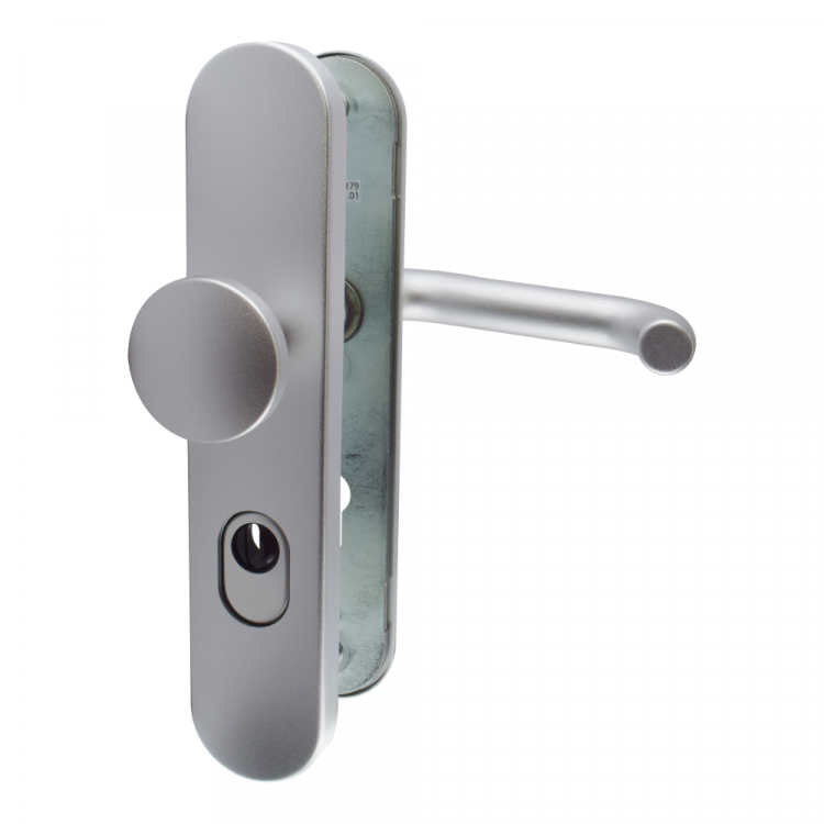 STAINLESS STEEL 'AUSTRIA' HANDLE WITH ROSE AND ESCUTCHEON Colour: Satin stainless steel