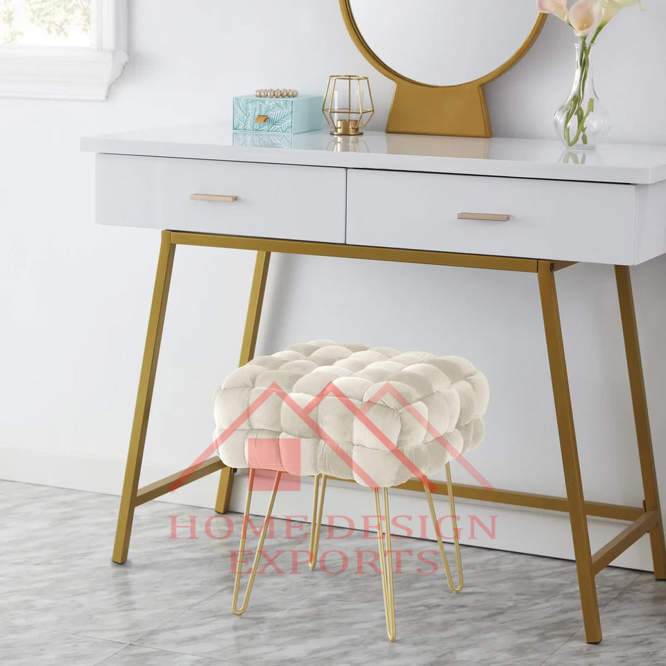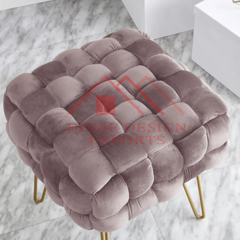 Stainless Steel Metal Frame Gold Finished Ottoman Stool Modern Room Furniture