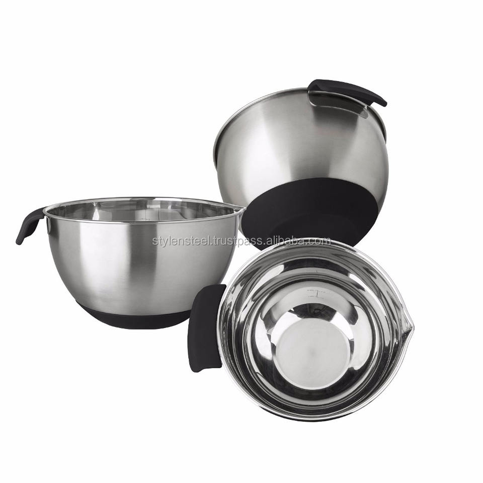 Stainless Steel Mixing Bowl High Quality 3 Piece Set Stainless Steel Anti Skid Mixing Bowl With Plastic Handle
