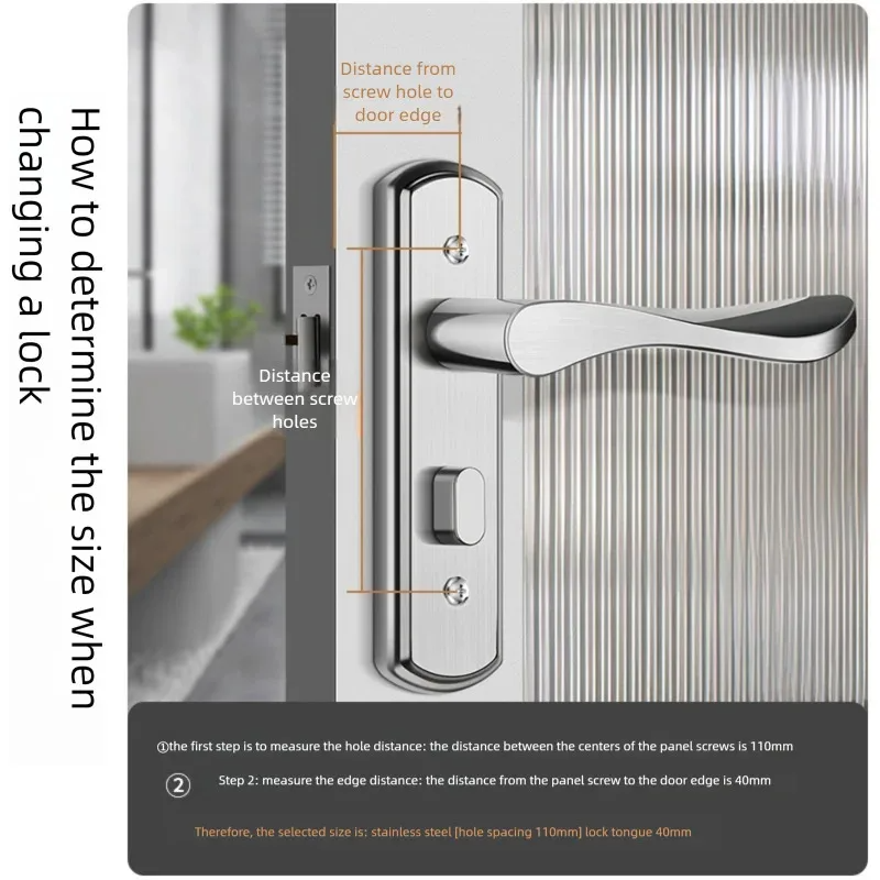 Stainless Steel Modern Bathroom & Bedroom Door Lock Set with Remote Control Includes Key 25/30/35/40/45/50mm Locking Tongue