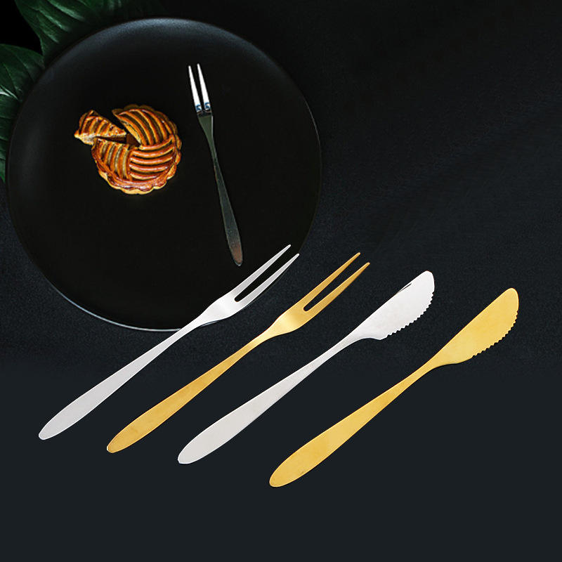 Stainless Steel Mooncake Knife And Fork Set 13.2Cm Silver Gold Dessert Tools For Adults