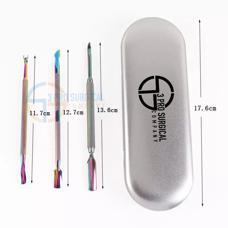 OEM Silver Stainless Steel Double Side Cuticle Pusher Bag Nail Polish Remover and Callus Tools for Fingers Gel Nail Pusher