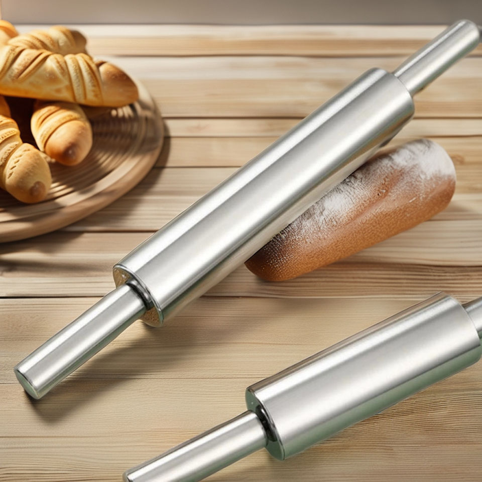 Stainless Steel Non-Stick Rolling Pin with Wood Handle for Cookies Dough Pastry Board Rolling