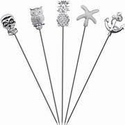 Stainless Steel Olive Picks With Holder Reusable Metal Skewers Multipurpose Bar Kitchen Home Party Essentials