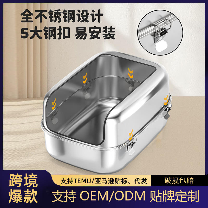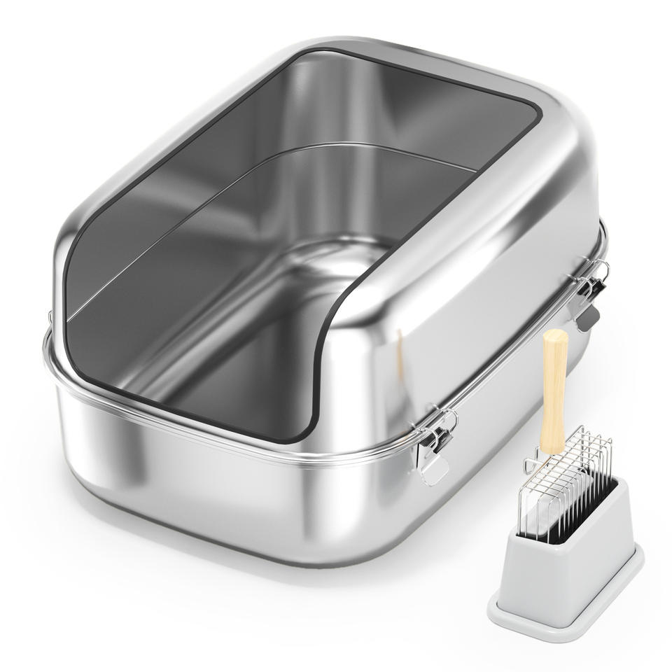 Stainless Steel Open Large Tray Integrated Easy-to-Wash Litter Box Cat Toilet