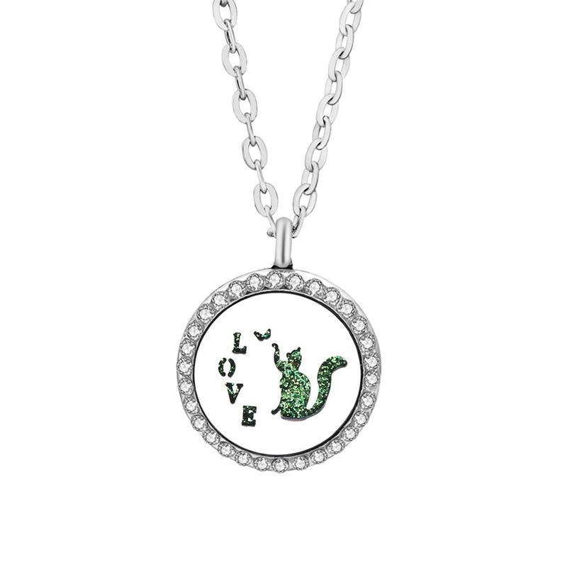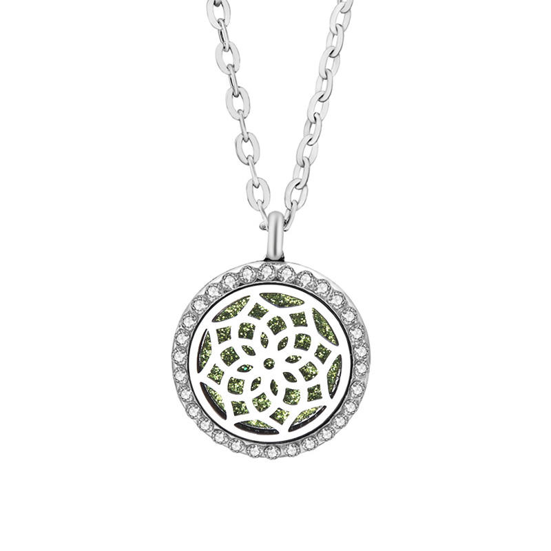 Stainless Steel Openable Round Perfume Box Aromatherapy Essential Oil Diffuser Pendant Necklace