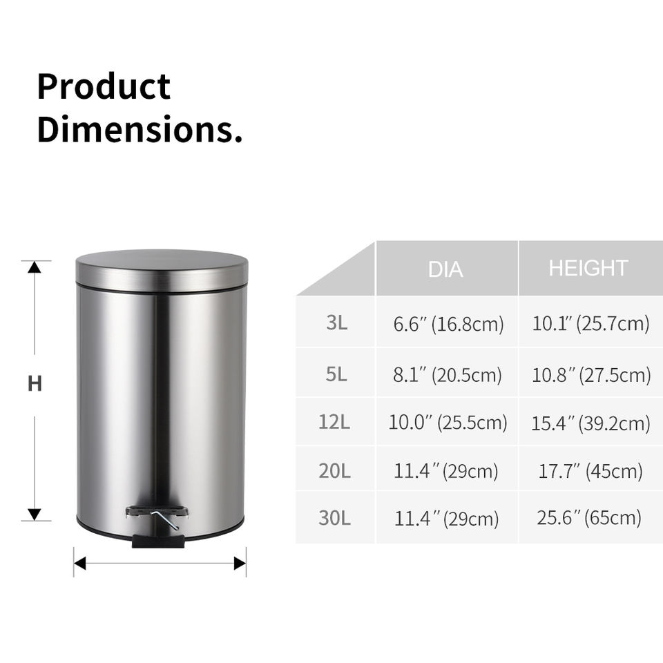 Stainless Steel Oval Soft-Close Garbage Bin Office Waste Recycle Bin with Foot Pedal and Indoor/Outdoor Use Size3L