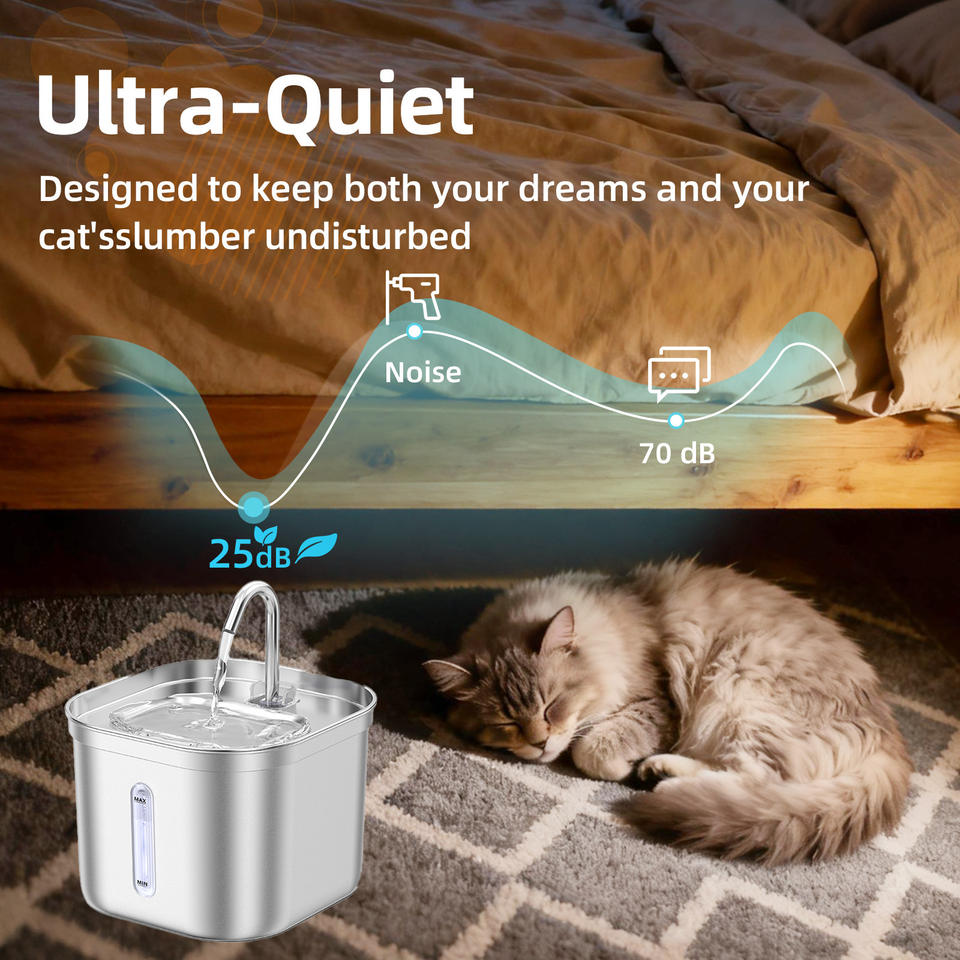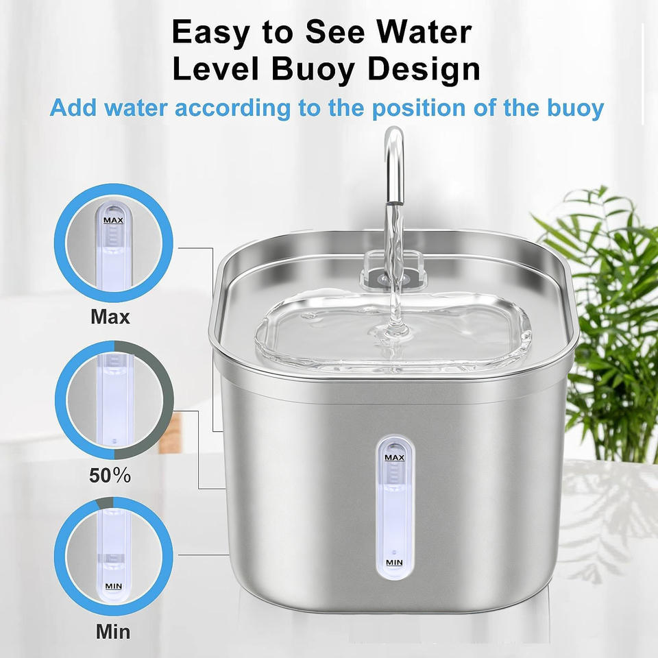 Stainless Steel Pet Water Fountain 304 Metal Electric Dog Cat Water Dispenser Detachable With Max Min Level Indicator